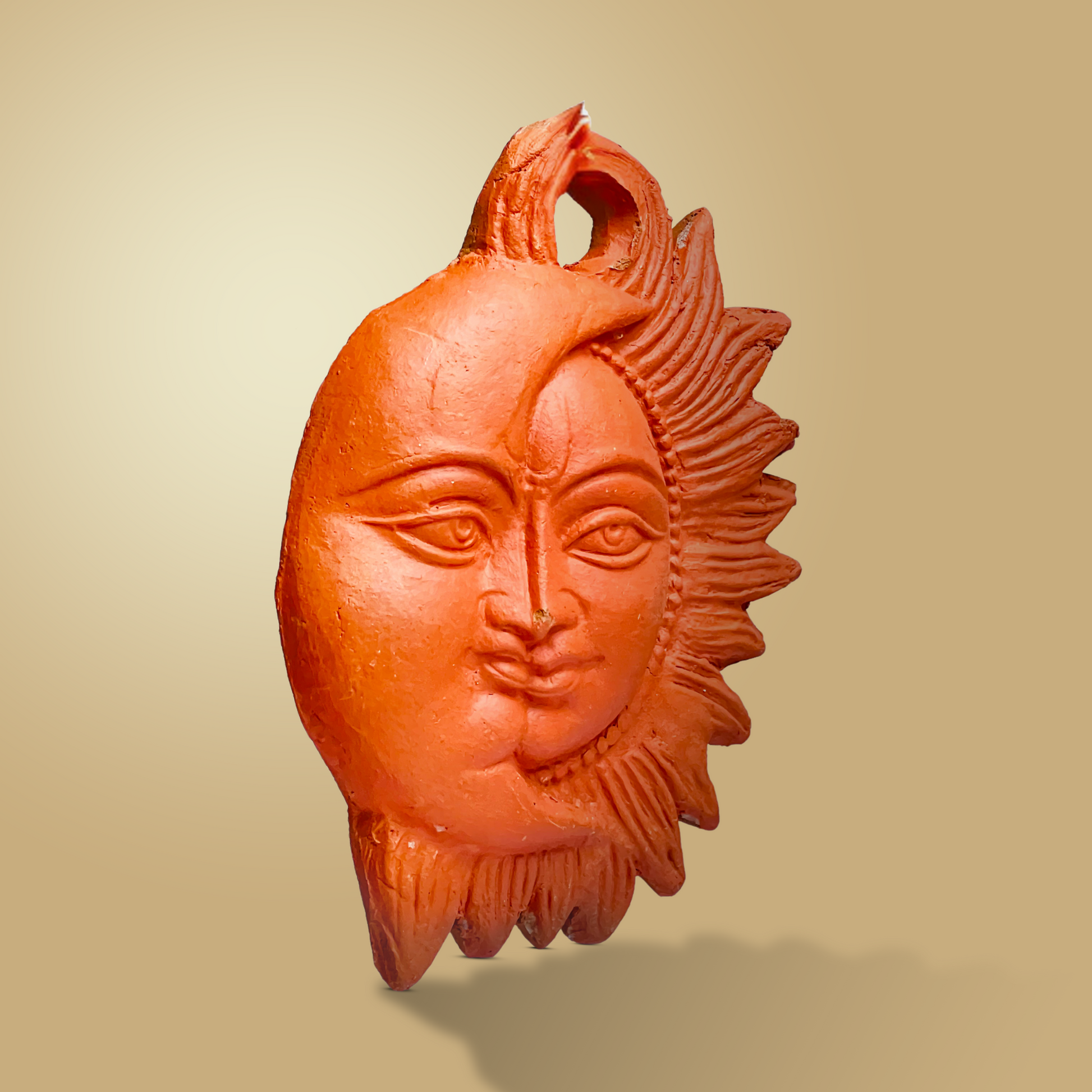 The Cosmic Harmony Mask captures the eternal dance of opposites, light and dark, energy and rest, day and night. Carved in terracotta and crafted by the hands of tribal artisans, this mask is more than wall decor. It’s balance, it’s poetry, it’s the cosmos on your wall.